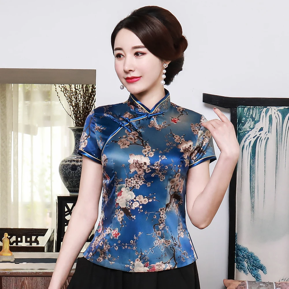 (33% Off) Comprar Blusa De Impressão Plus Size 3xl 4xl Chinês Feminino Elegante Tang Topo Manga Curta Camisa Do Vintage Gola Mandarim Vesdios Baratas Online Preço