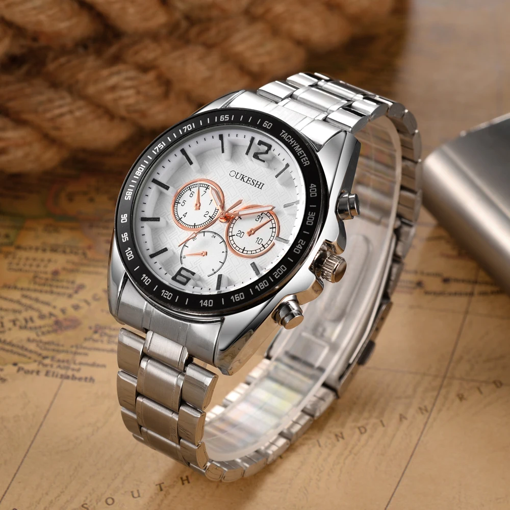 (0% Off) Comprar OUKESHI Aço Inoxidável Quartz Men Watch New Fashion Boutique De Negócios Do Esporte Militar Relógio Pulso Casual Relógios Relogio Feminino Baratas Online Preço