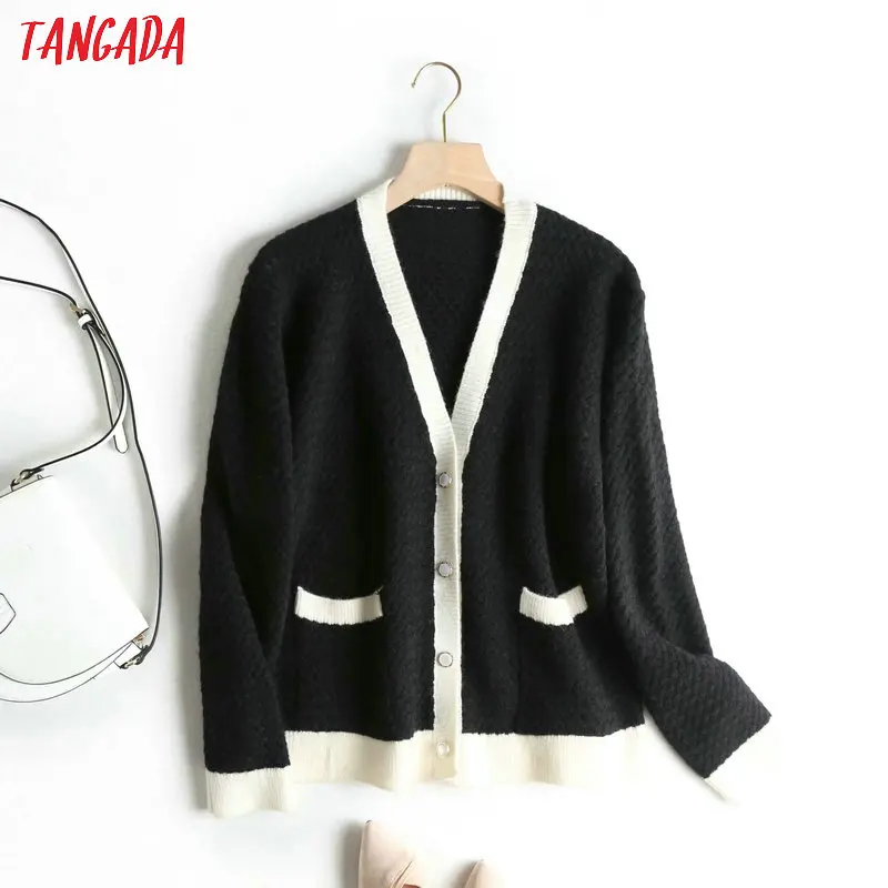 (30% Off) Comprar Tangada Feminino Elegante Cardigan Camisola De Manga Comprida Botões Bolso Escritório Senhora Malha Blusas Básico Bao4 Baratas Online Preço