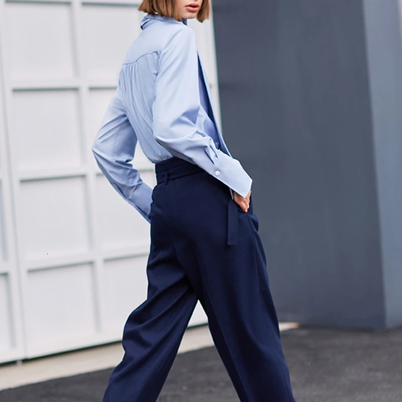 (50% Off) Comprar Twotwinstyle Casual Irregular Blusas Femininas Assimétricas Gola Alta Manga Longa Camisas Soltas Moda Feminina 2019 Roupas Maré Baratas Online Preço